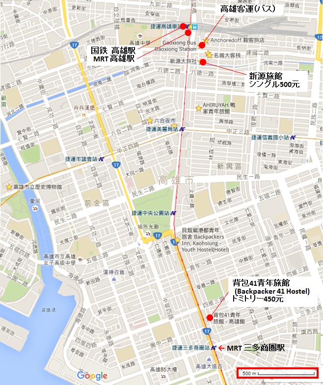 ・高雄駅やバスターミナルも近く、超便利な所にあり。