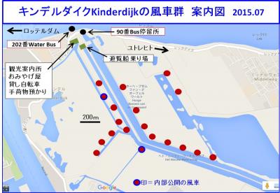 キンデルダイクKinderdijk風車群の観光地図 (2015年7月)