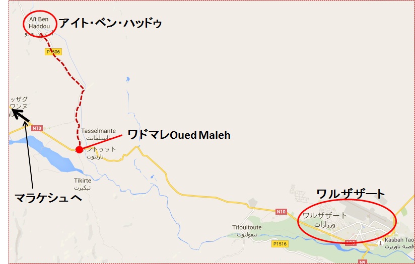 【場所】川向こうにアイト・ベン・ハッドウが見える絶好の位置にある。