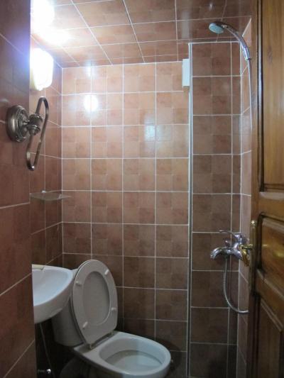 【設備】ファン、TV。(共同)ホットシャワー20-23時、座り込み式トイレ。