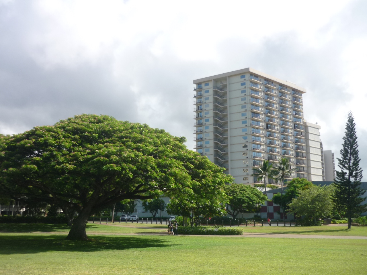 昨年のお盆休みにホノルルに行った際に7泊宿泊しました。12時ごろに到着したのですがチェックイン可能で大変助かりました。部屋はキッチン付のツインの部屋で部屋からは公園の向こうにワイキキビーチが見える気持ちの良い部屋でした。