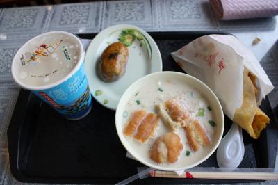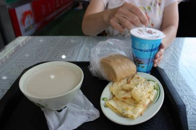 とくに美味しかったのは鹹豆漿と、油條を蛋餅で巻いたもの(名前失念しましま)
