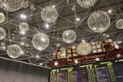 ヘルシンキの空港はクリスマス一色でした!帰りの飛行機前にはサンタさんが...