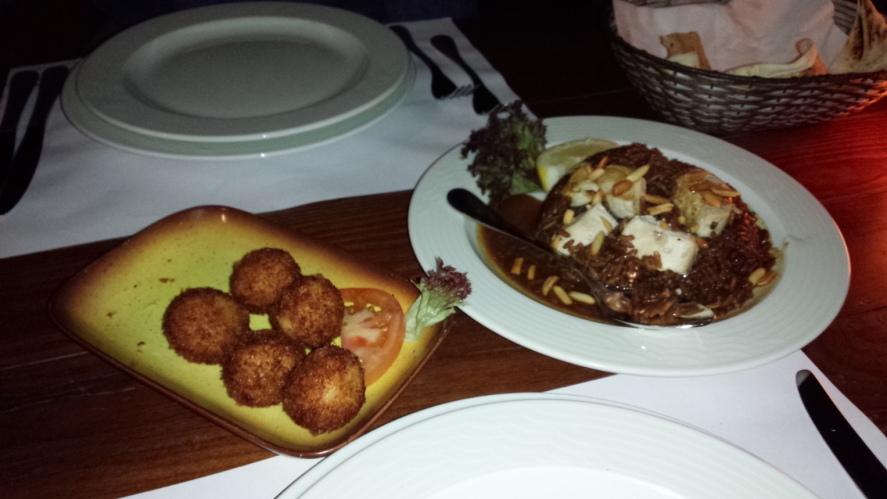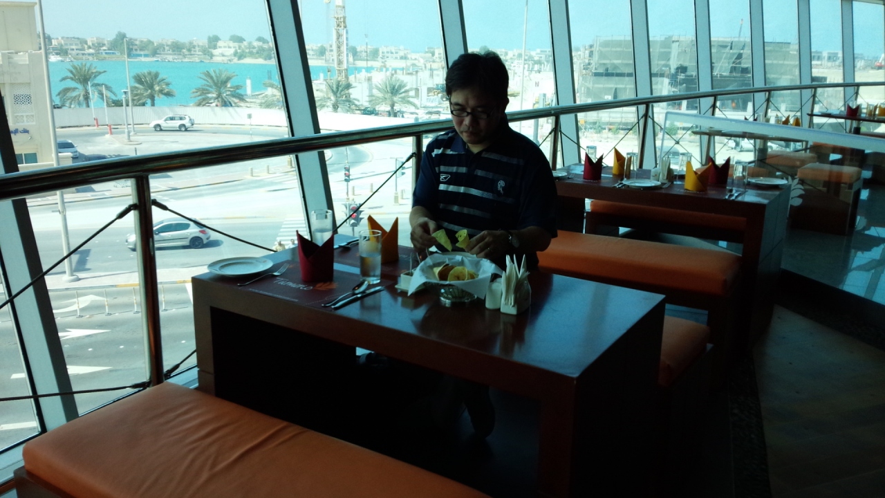 UAEではお酒が非常に高い(ビール1杯1,000円程度)ですが、あまりお腹が空いていなかったため2品ほどのお料理と合わせて10,000円程度。お料理はう~んといった感じで残念ながら値段不相応です。