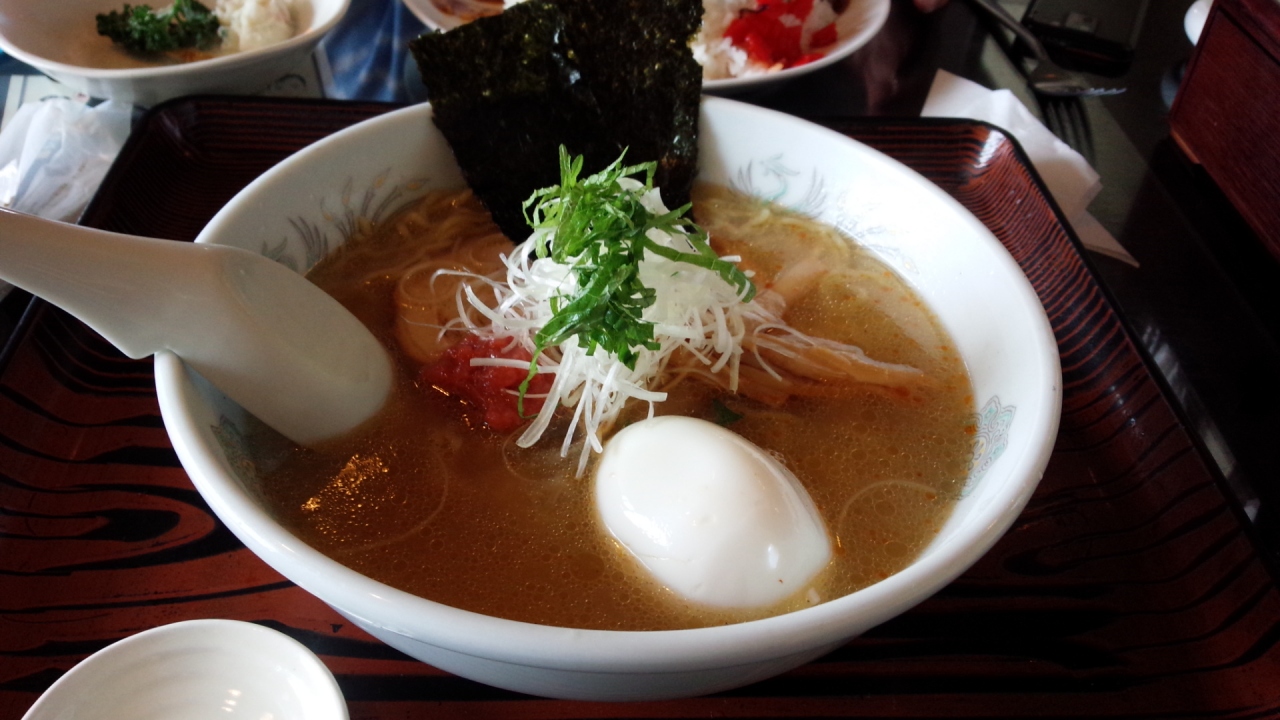 メニューはとても豊富で、馬刺しも揃えていますがランチなので、私はあっさりな姫ラーメンで夫はカツカレー。