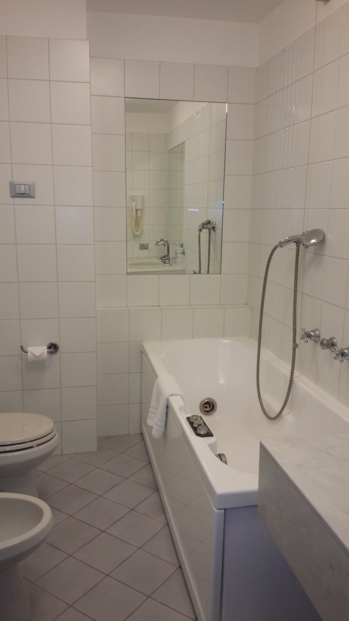早朝マルペンサ空港着、最後の晩餐予約が11:15だったので、このホテルにしました。 ミラノ北駅から徒歩5分程度、ホテル着が9:30頃でしたが、お部屋を使わせていただいたのが本当にありがたかった! 古いタイプのスイートでしたが、リビングとベッドルームが分かれていたので、ロングフライトで疲れて夜は早めに寝たい私と、20:45キックオフのインテルの試合観戦をしたい夫と住み分けができるのも良いです。 トラムを使えばドゥオーモまで街並みを眺めながら5分程度。地下鉄より断然楽しい。 周辺は高級住宅街のもようで、街並みもひともかなりキレイで静かです。