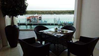 ホテルサイトで格安で朝食付プランを予約(サ・税込で2万円切ってました)、チェックイン時に100ディラハムUPでマングローブサイドのお部屋はどうですか?と提案され乗りました。