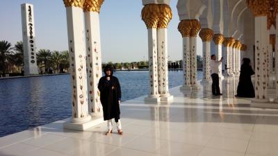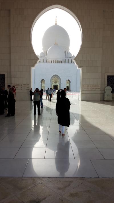 モスク入口でアバヤを借りたいと言うと、地下の駐車場を案内されます。