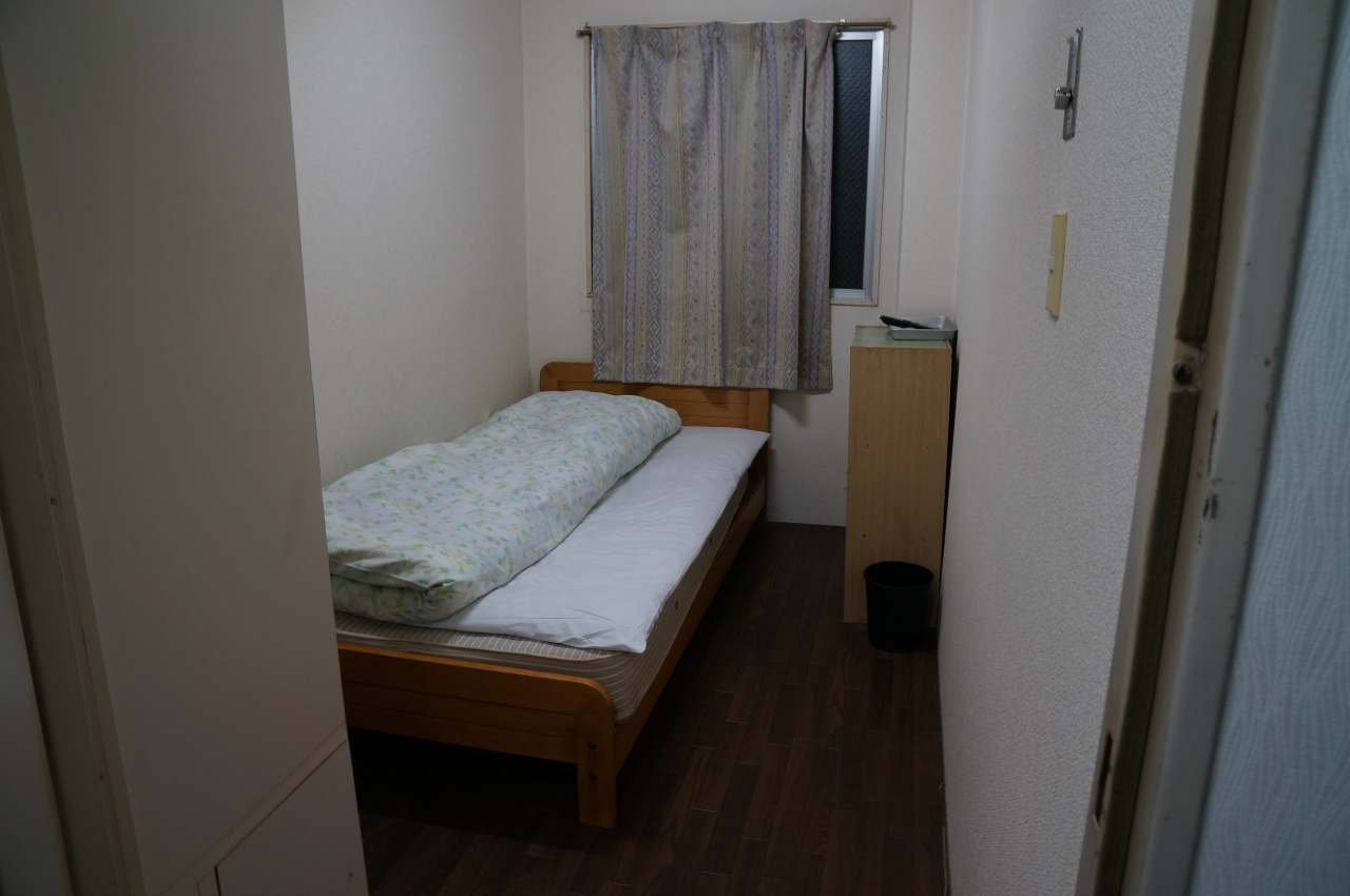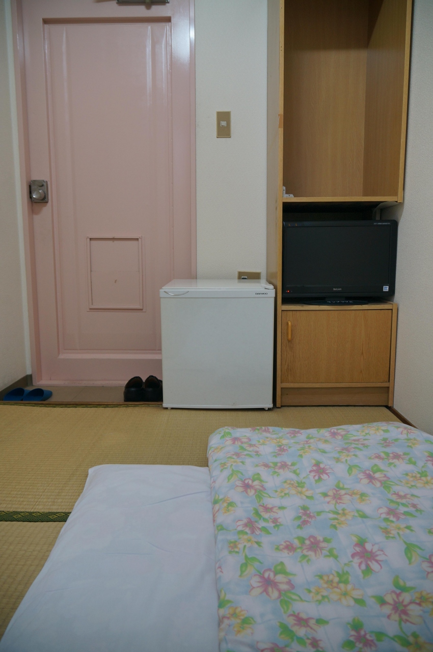 狭い部屋にテレビ、冷蔵庫と薄い布団が置いてあるだけの質素な部屋でした。
