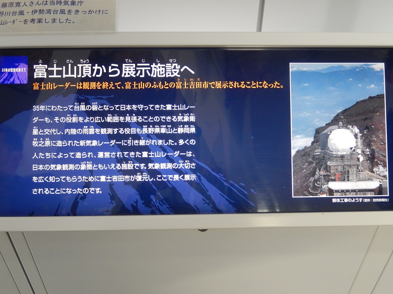 - 富士山レーダーの軌跡や富士山からの気象観測体験ができてよかった。当時の観測装置の展示も良かった。