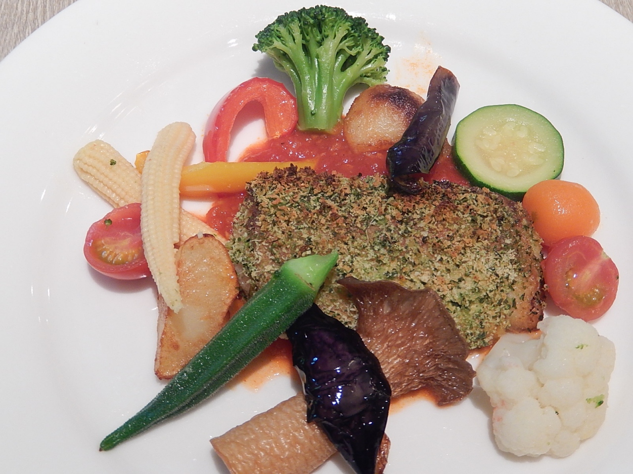 この日のランチメニューとして白身魚のムニエルをいただいたが、季節ものの野菜がいろいろと添えられて良かった。