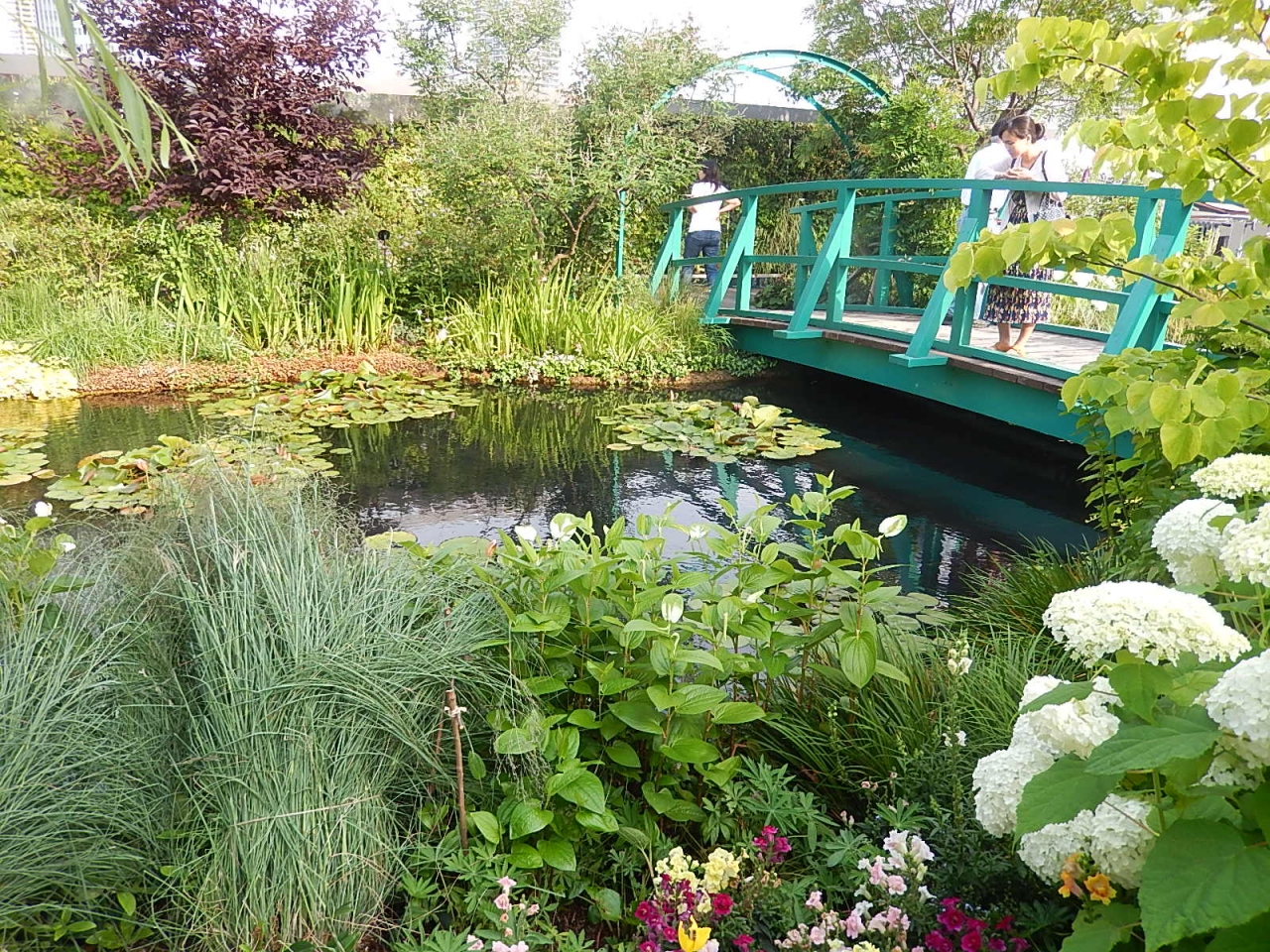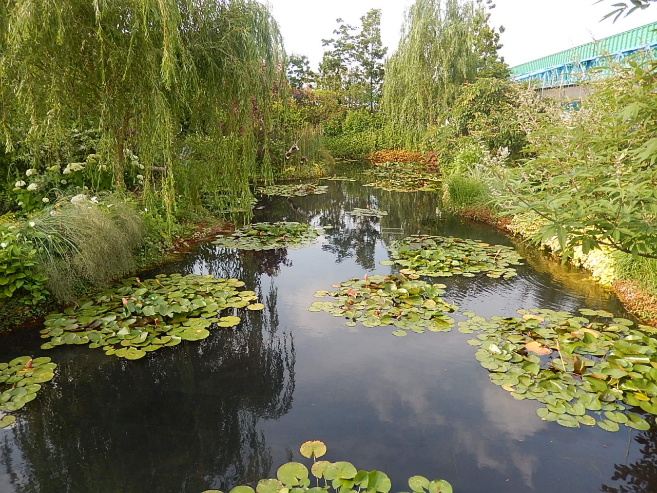 都会の中に印象派のクロードモネが愛した睡蓮が咲く庭園を模して造られており感じが出ている。 春先より初夏にかけてはいろいろな花が咲いているので見て楽しんだり、クロードモネの大作「睡蓮」が製作された雰囲気を感じられて面白いと思われる。