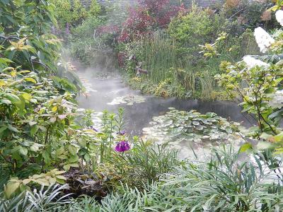 - 都会の中にクロードモネが愛した睡蓮が咲く庭園を模していて感じが出ている