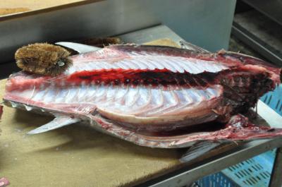 魚市場でさばいてもらった魚をご飯とお味噌汁で食べられるというコーナーは画期的なアイデアだと思います。午前中しか開いていませんが、少し早めのランチにぴったりです。ごはんとお味噌汁は大きな釜にあります。このコーナーは市場の一番奥にあります。