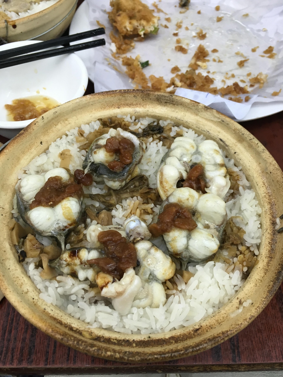 地元の友人に案内してもらい、オイスターオムレツと保仔飯をいただきました。