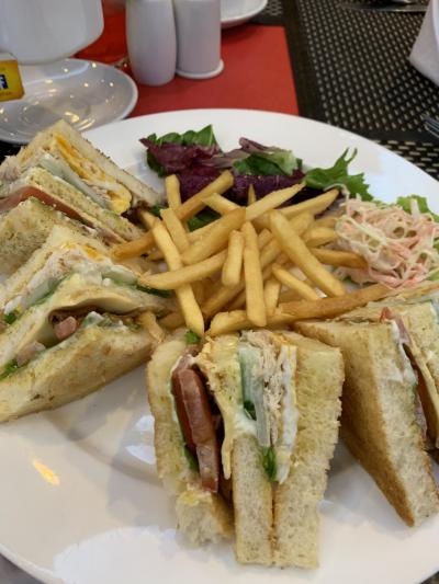一階のレストランで夜にクラブハウスサンドイッチをいただきましたが、250円でたっぷり量があり、美味しかったです。- 旅行時期