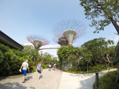 マリーナベイサンズの真横にあり、橋で繋がっているので、徒歩で行けます。敷地は広くて入場は無料ですが、トラムや室内型のエリアは有料です。敷地内は広いので歩くのであれば結構しんどいです。意外とツリーはこんなもんかって感じで遠くから見れたらいいかなって感じでした。、