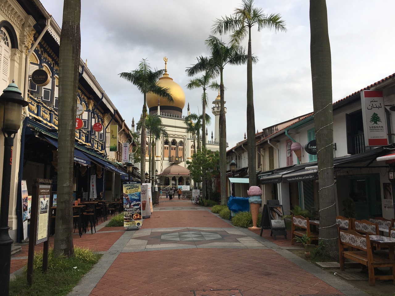 アラブストリートの中心にあるカフェで、外見はとてもカッコ良く青と金色のお洒落な建物です。外の席であれば、サルタンモスクも眺めれて最高ですね。マンゴーのシャーベットみたいな飲み物はとても美味しくて3ドルとここら辺にしてはお安めかなと感じました。