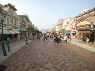 香港ディズニーランドのメインストリートであるUSAではショップはもちろん、プロジェクションマッピングも、パレードも、キャラクターグリーティングも全てこちらのエリアで行われます。とても楽しくて満足でした。