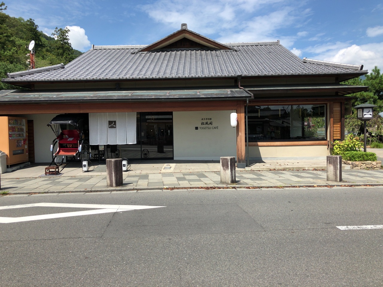 渡月亭の別館で、ほんとに渡月橋の真横にあります。建物はとても綺麗で店内もお洒落で景色が最高です。料理はランチコースでお高いですが、嵯峨の豆腐懐石はとても美味しくて鮎の塩焼きは最高でした。量も満足でした。