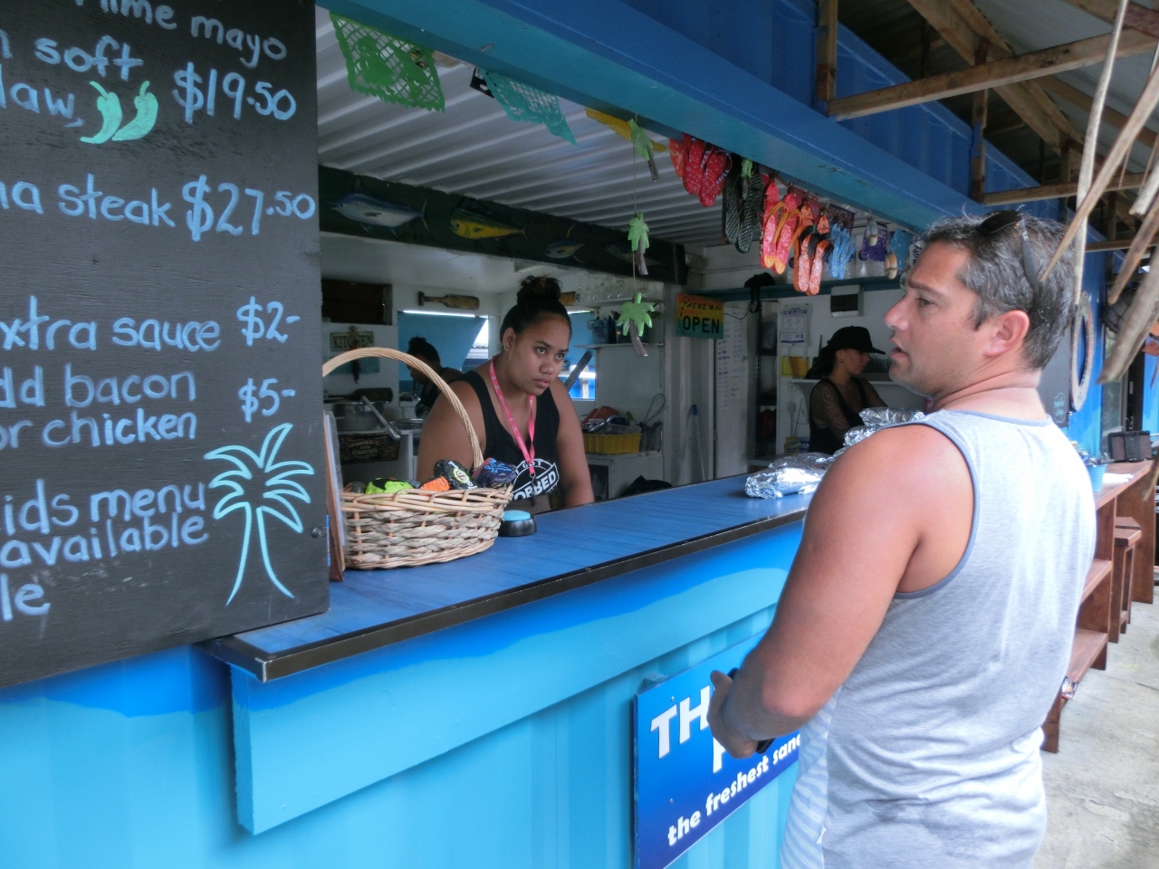 10カ月振りのラロトンガ島でやはりはずせないのがチビも大のお気に入りであるここ♪ツナステーキとマヒマヒのフライはマスト(^^♪