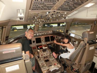 オークランド空港到着すると操縦席に案内して頂き大型機B777-200の...
