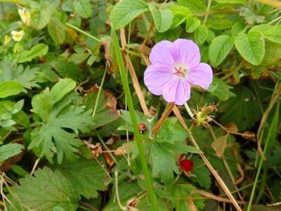 エゾフウロとナワシロイチゴ@野付半島鮮やかに赤色に誘われ、1粒いただき...