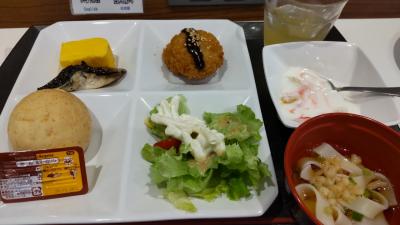 朝食付きなら一階のとんかつ松のやでの朝定食になるようです。コンビニも一階にあり便利。