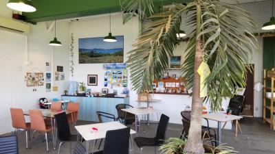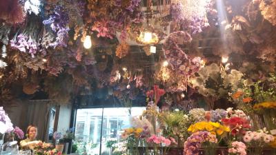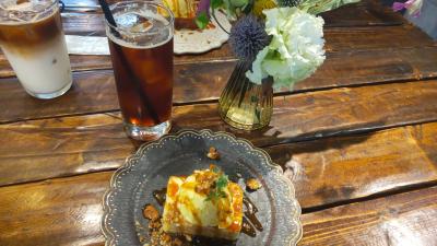 JR千早駅高架下のテーブルが2つだけの小さな店です。駅近にはお茶できる店が少ないので貴重かも。天井からドライフラワーがたくさんぶら下がっていて素敵な空間になっています。お店を入ってカウンターで注文、決済。メニューはドリンクとケーキのみでした。