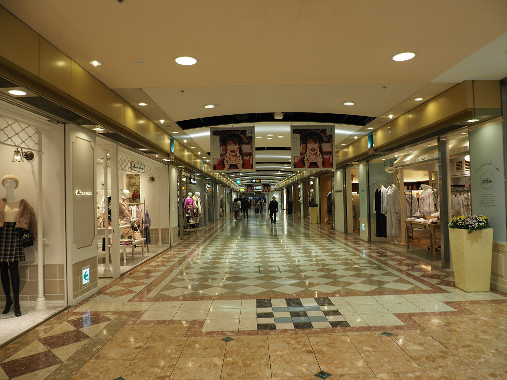 雨の時は、地下街をとおってアーケードつきの商店街をすすめばぬれずに行けますが、最後だけは屋根がないです。