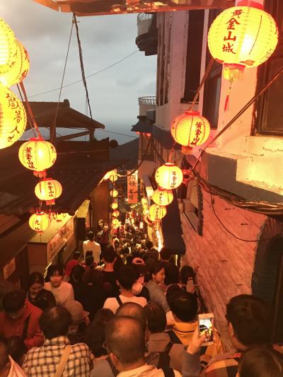 そして、夕暮れ時の九份はご覧の通りの激混みです。芋洗い状態です。疲れて...