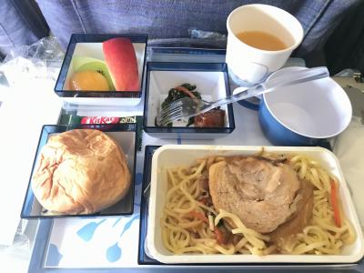往復チャイナエアラインで行きました。機内食は一回。焼きそばかカレーか選...