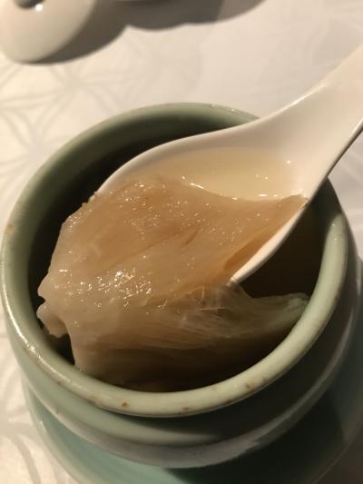 鶏肉とフカヒレスープ。フカヒレが塊で入っていて、スープも上品な味。