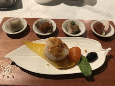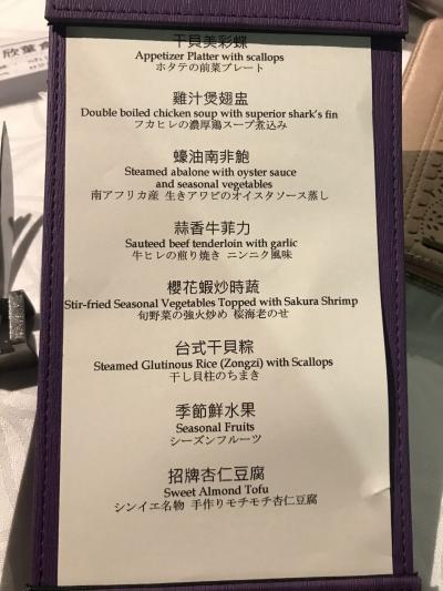 夕食は85階の欣葉食藝軒。せっかくなのでと奮発してコース。窓際席は1人...