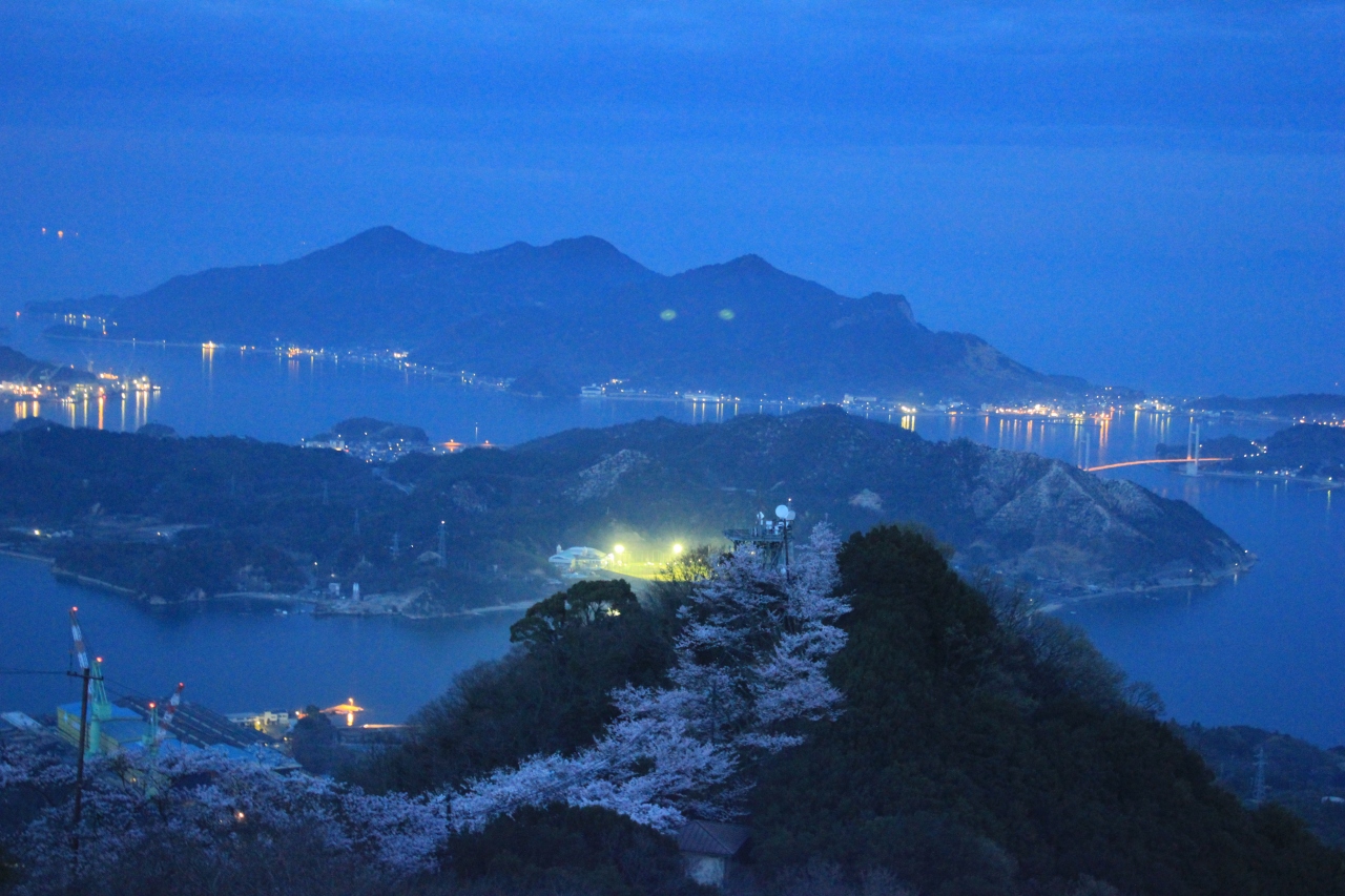 瀬戸内の多島美と桜の織りなす景観が見事の一言です。