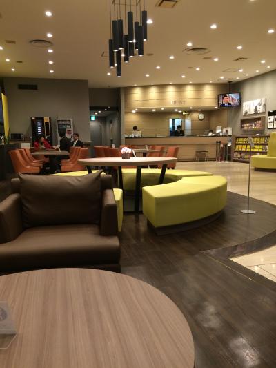 ホテルは一般的ビジネスホテルの仕様と作りです。ただ1階のロビー周りは広く明るく、またインテリアもスタイリッシュでした。