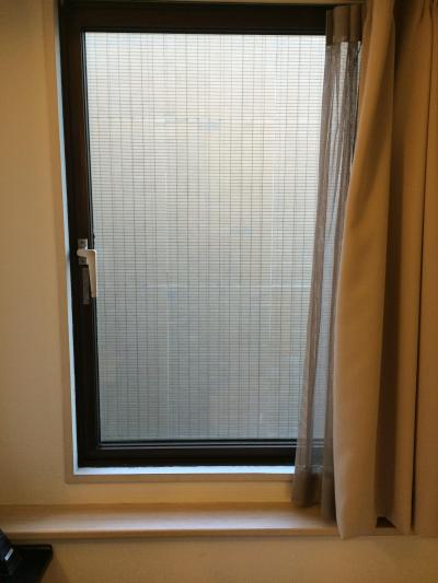 宿泊した部屋は外廊下に囲まれたボイドの中に位置するため窓の外は外廊下と非常階段、プライバシー全く無しです。
