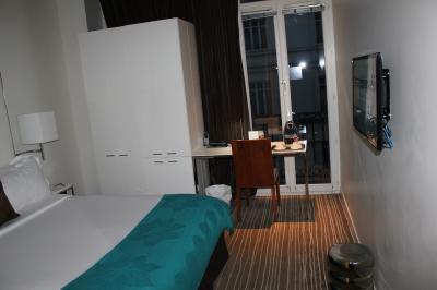 パリだからしょうがないとは思いますが、部屋のスペースは狭っ・・・でした。トランクケースを二つ広げると歩ける場所は限られます。