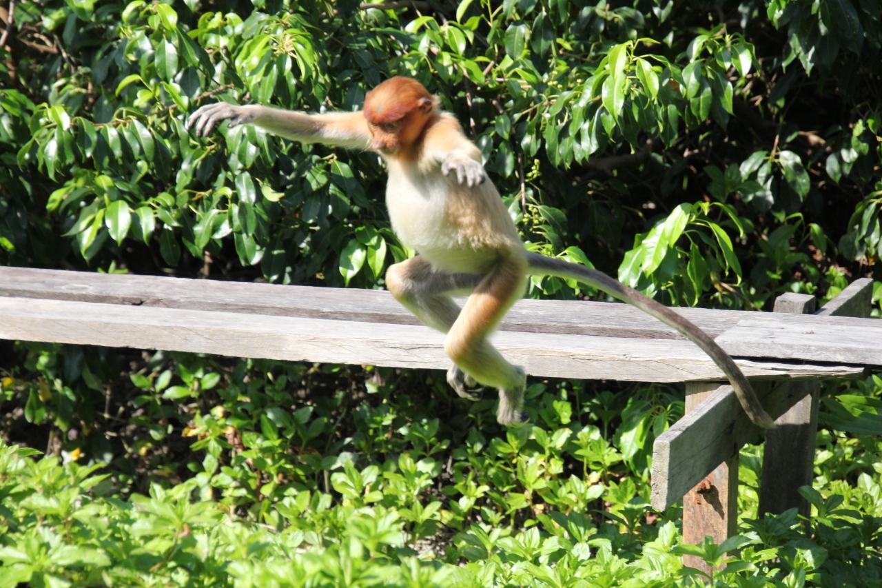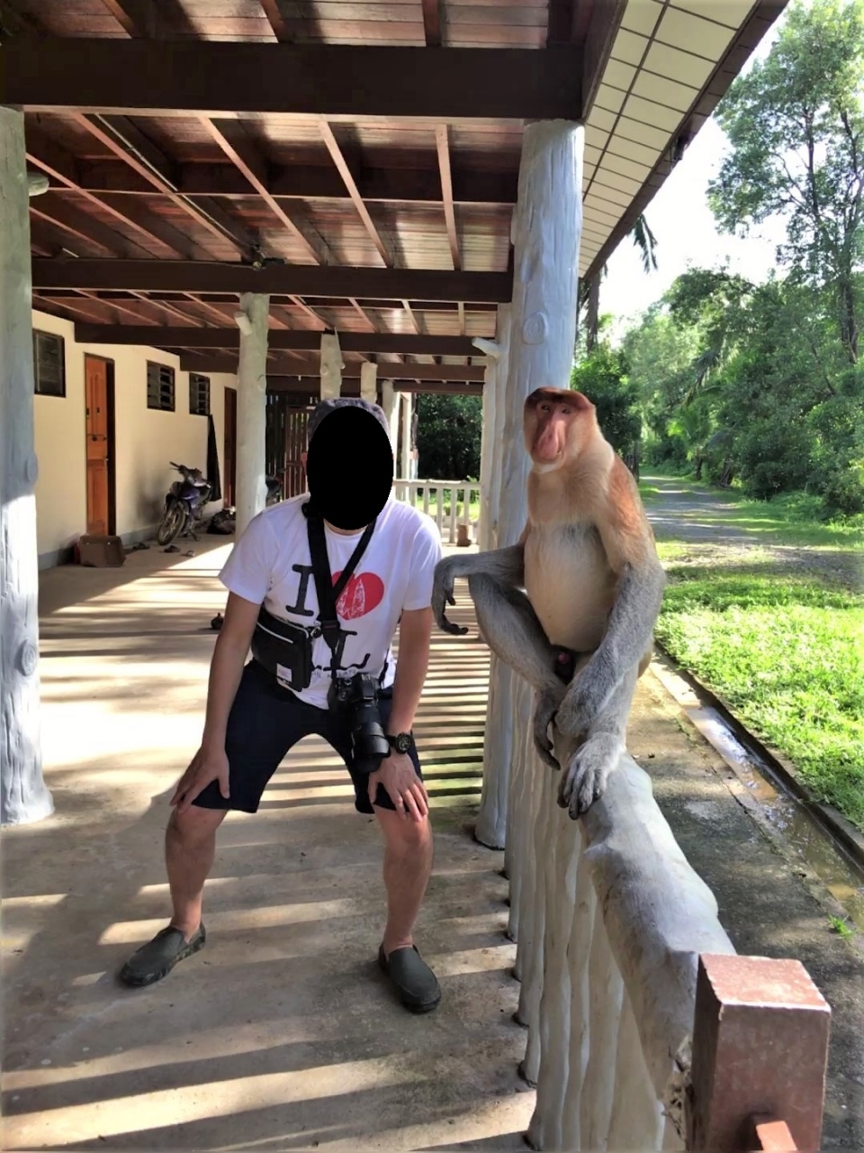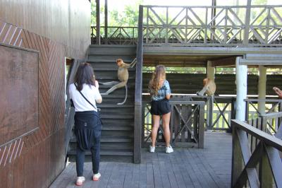 3匹のテングザルと2ショット撮影をしたりと人慣れしたテングザルを間近で見ることができ。