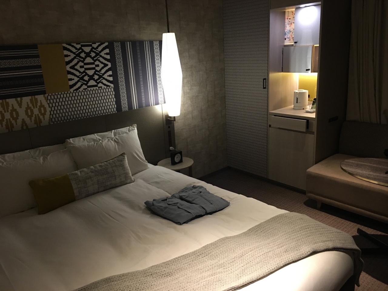 部屋は狭くキャリーケースでの荷まとめは少々難儀する。