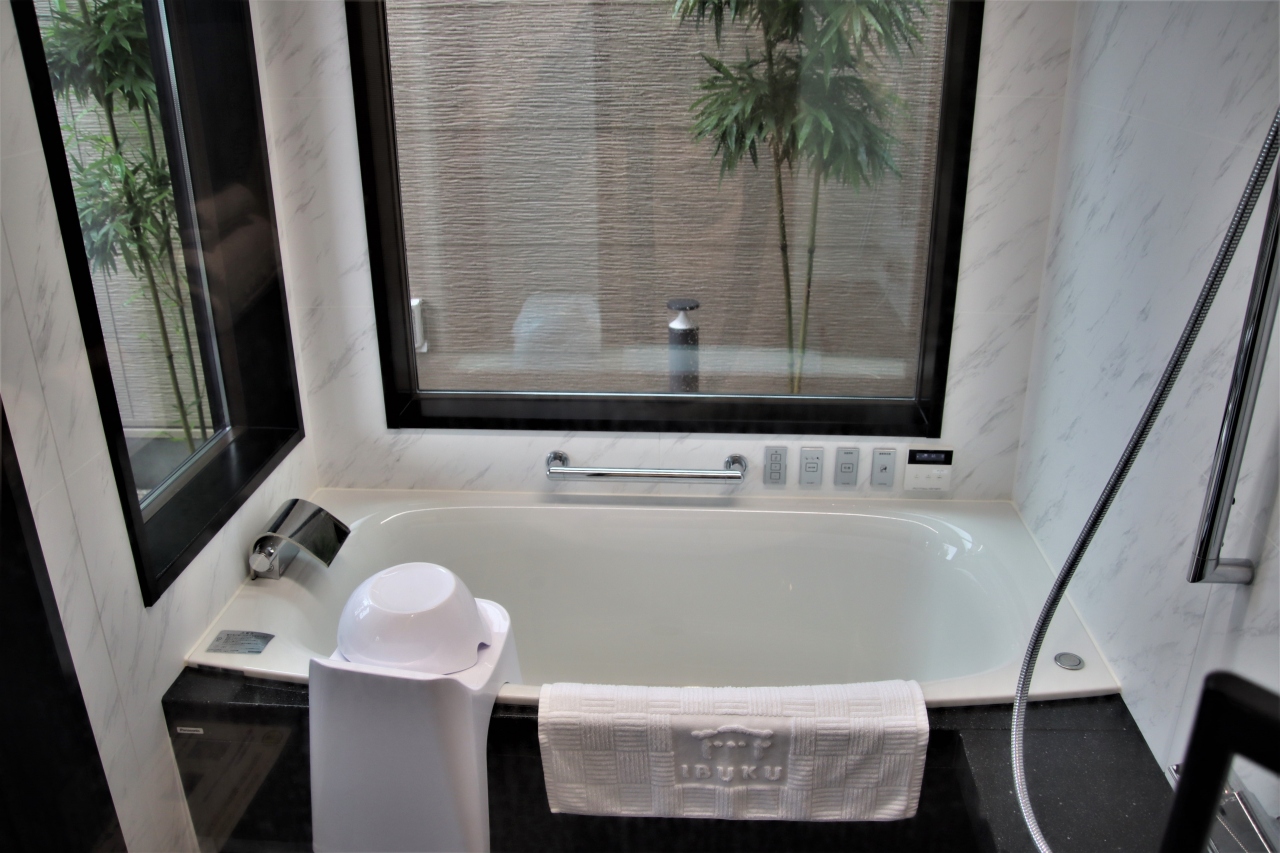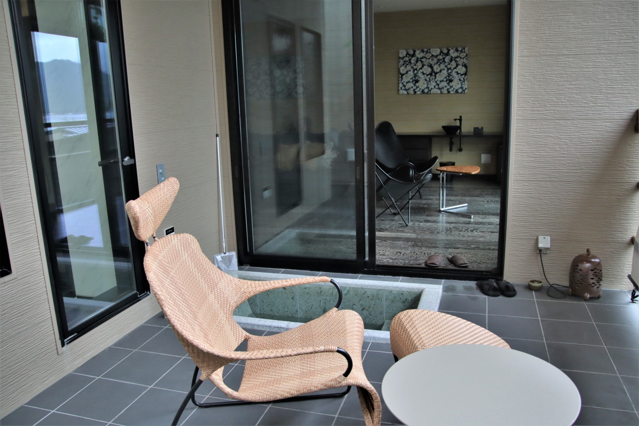 室内は和洋折衷のモダンデザイン、大画面TV、Bluetoothスピーカー&美泡湯装置付きの浴室(露天と隣接)、デザイナーズ家具、グーグルホーム等が揃っており、室内滞在だけで十分に楽しめる。