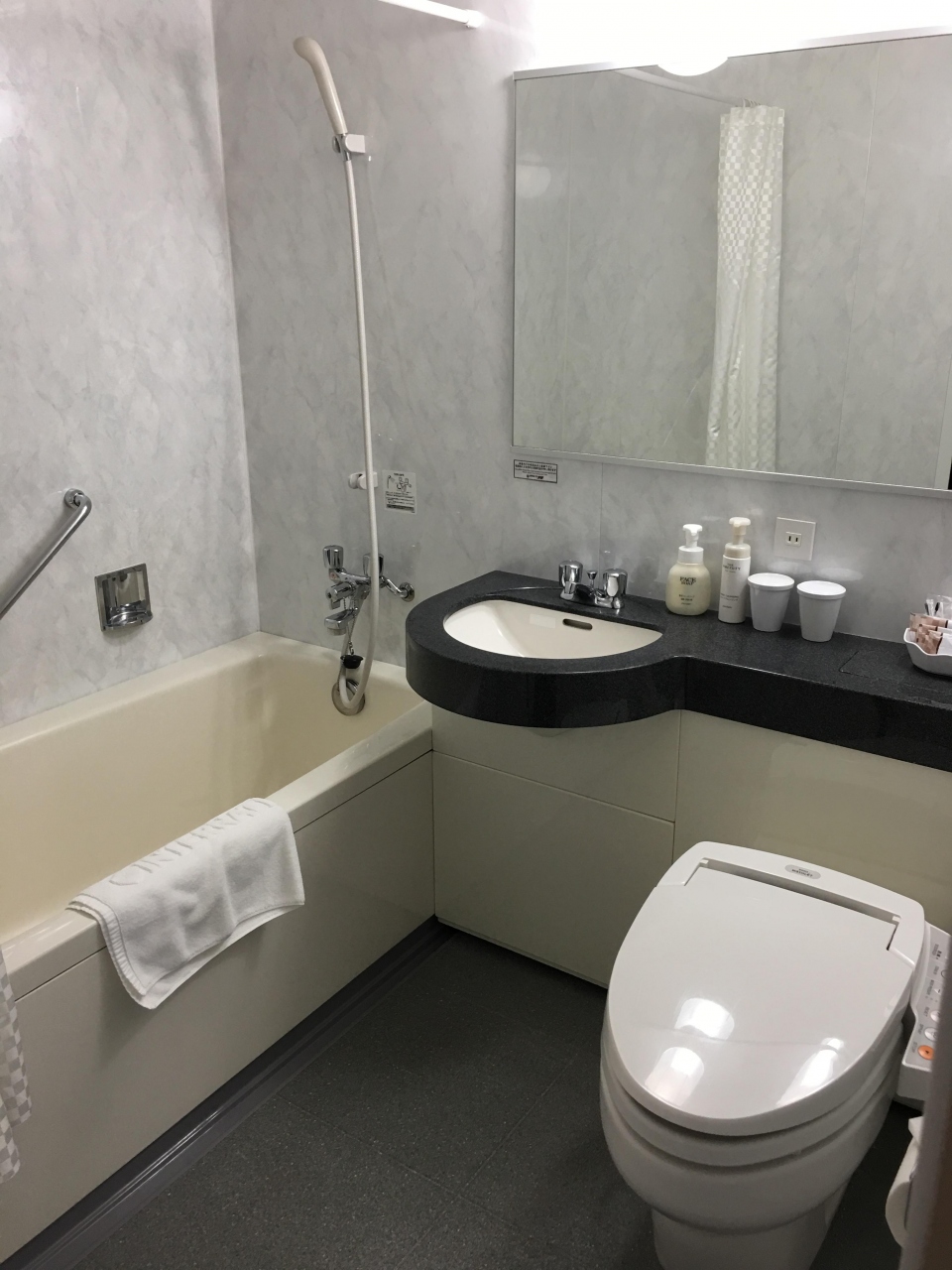 場所柄しょうがないが、部屋は極狭、ただ浴室は余裕あり。