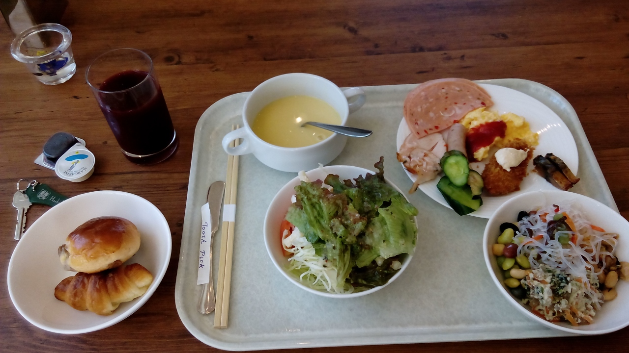 ディナーのフレンチ、朝のビュフェと食事は充実、美味しかったです。
