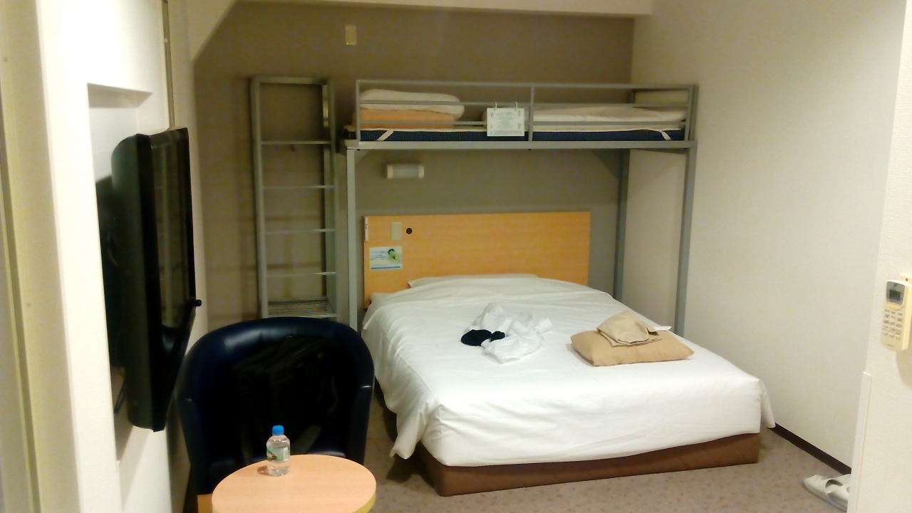 2段ベッド+ダブルベッドと一人には十分過ぎる余裕の部屋でした。