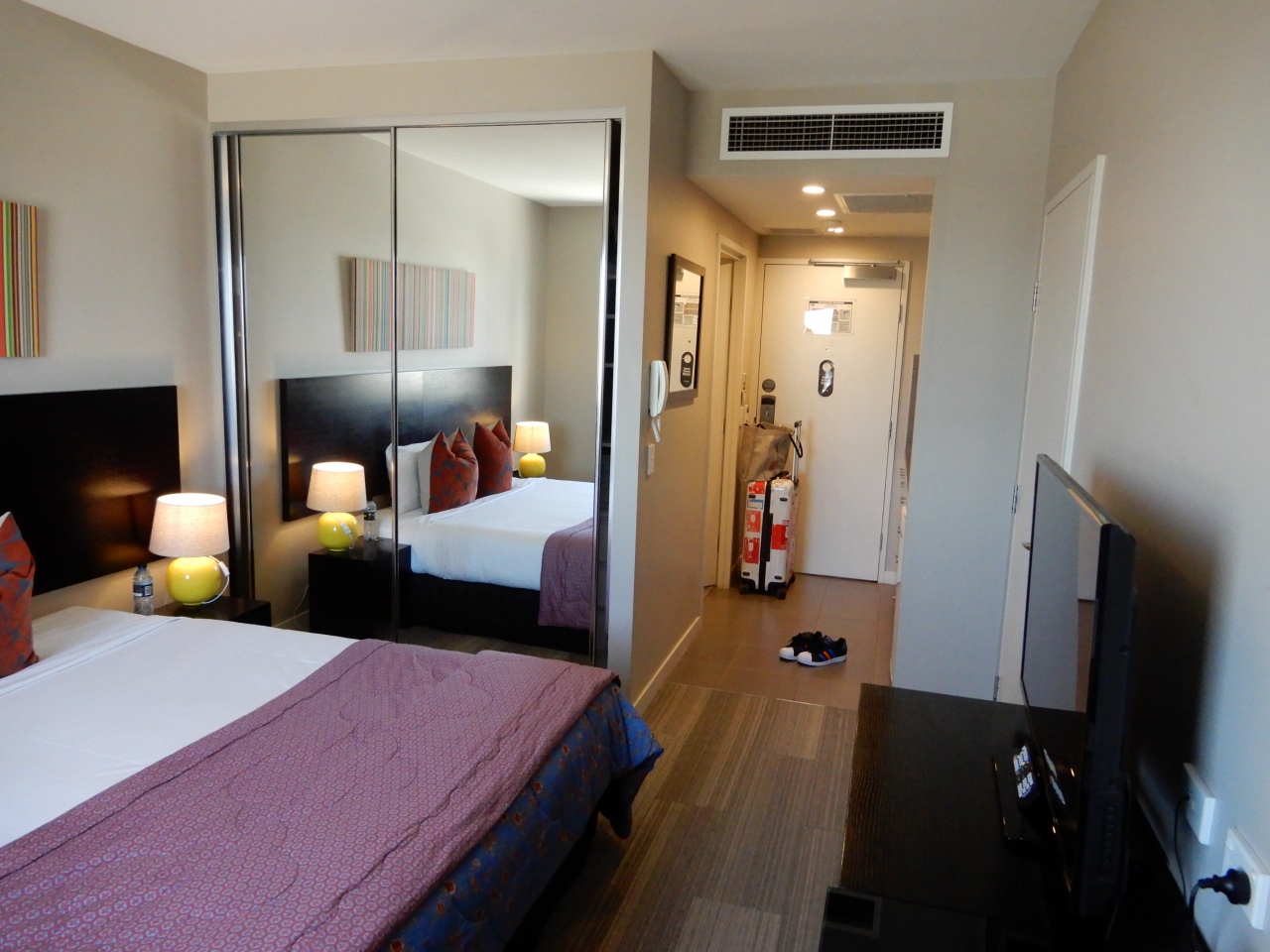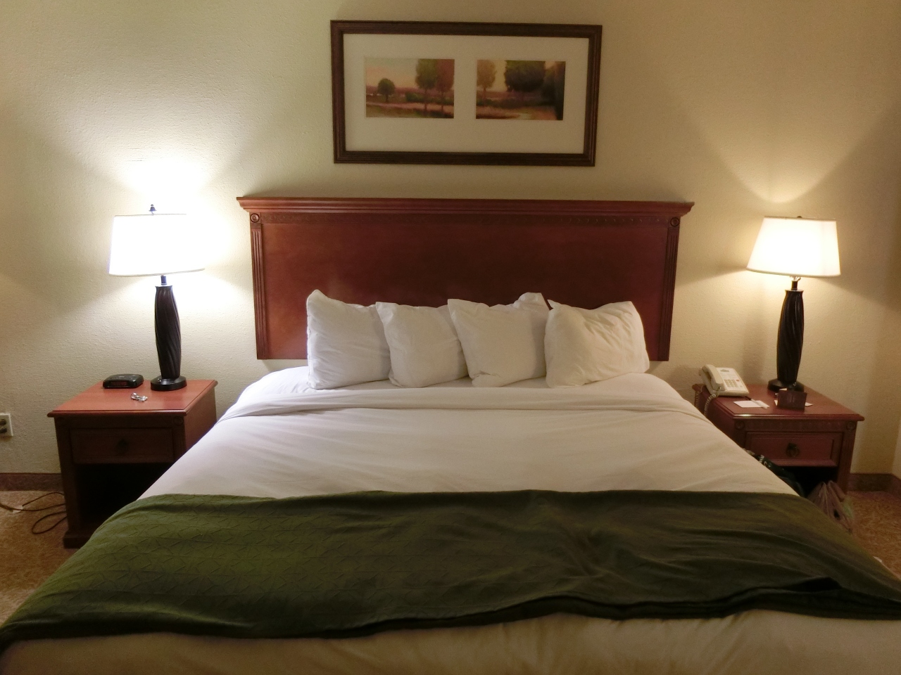 部屋はとても広く、アメリカンなサイズのベッド。アメニティも問題なく、パンテーン