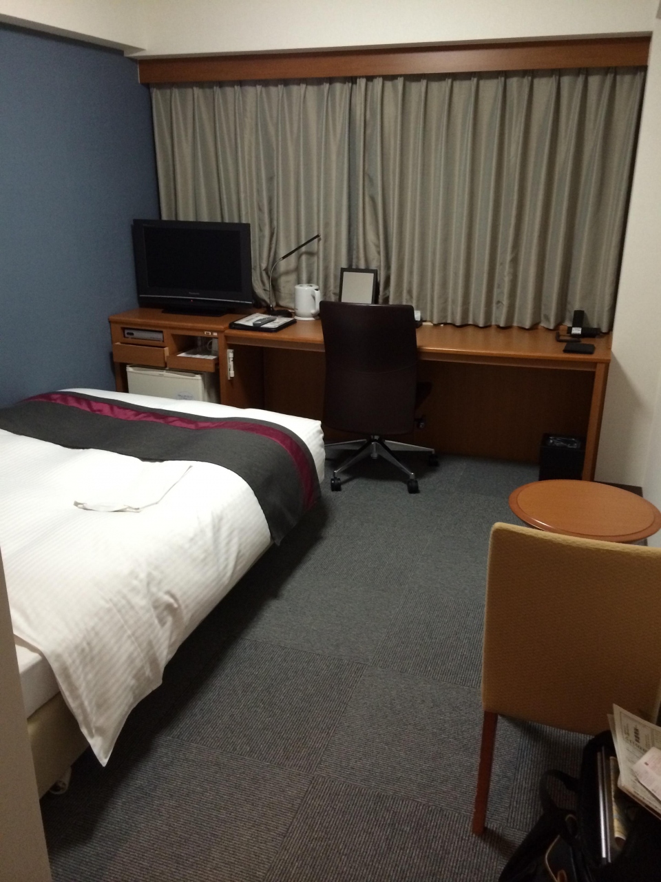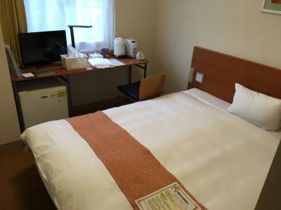 翌日の計画のために前泊。立地と価格で選択。最安シングルで良かったのですが空いておらず生憎ダブルで宿泊。