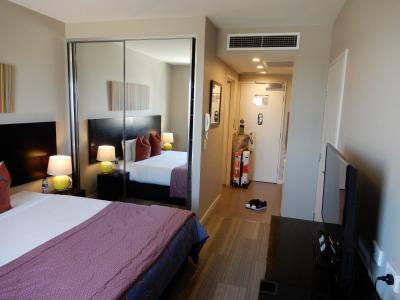 特徴は以下の内容。部屋はキッチンリビングルームとベッドルームのスイート。スイートルームと言っても、豪華では無いですよ。あくまで2間あるという事です。