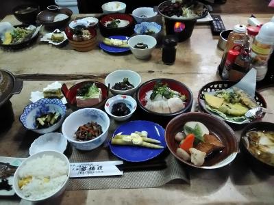 5.0焼き魚に天ぷら、煮物にお刺身、そして 鍋物!味噌汁も具だくさんだし、ご飯も 白飯ではなく、栗ご飯でした。食欲は旺盛な方ですが、見た瞬間、「食べきれるかな!?」と...もっと見る