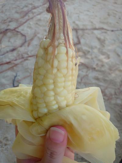 日本のコーンとは違った白っぽいコーン購入。もっちりした感じで、お腹にた...