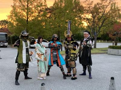スタート地点で戦国武将衣装で会場を盛り上げてます